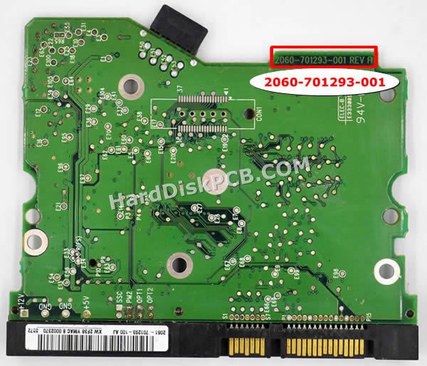 Il “Numero PCB” è 2060-701293-001. Il “Numero PCB” del disco rigido Western Digital inizia con “2060-***”, il numero è stampato sulla scheda. Quando si desidera sostituire la scheda, la scheda donatrice deve avere lo stesso “numero PCB” della scheda originale. Sostituire scheda hard disk Western Digital