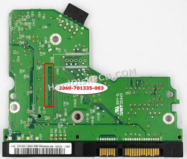Il “Numero PCB” è 2060-701335-003. Il “Numero PCB” del disco rigido Western Digital inizia con “2060-***”, il numero è stampato sulla scheda. Quando si desidera sostituire la scheda, la scheda donatrice deve avere lo stesso “numero PCB” della scheda originale. Sostituire scheda hard disk Western Digital