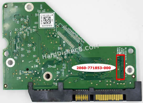 Il “Numero PCB” è 2060-771853-000. Il “Numero PCB” del disco rigido Western Digital inizia con “2060-***”, il numero è stampato sulla scheda. Quando si desidera sostituire la scheda, la scheda donatrice deve avere lo stesso “numero PCB” della scheda originale. Sostituire scheda hard disk Western Digital